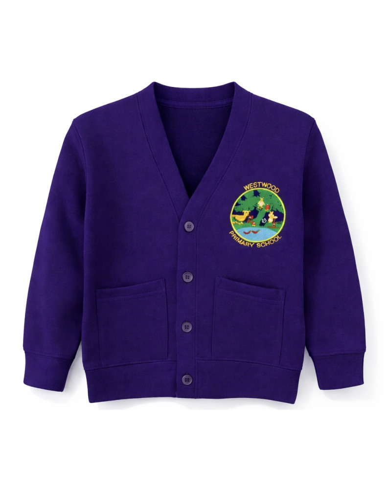 Garment Description: Purple Cardigan - 70% Cotton and 30% Polyester.